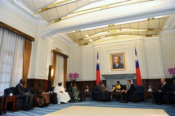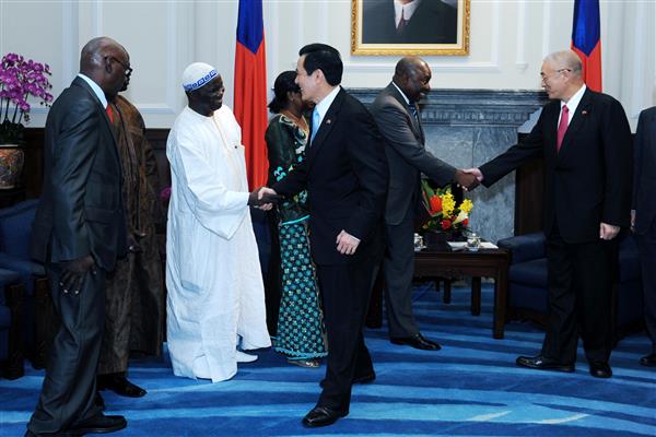 為祝賀我國第13任總統、副總統宣誓就職,我非洲友邦甘比亞共和國外交、國際合作暨旅外甘人事務部長賈義(Mambury Njie)率致賀團一行,於下午前來總統府晉見總統,包括副總統吳敦義、國家安全會議秘書長胡為真及外交部次長沈斯淳等人在座陪同。