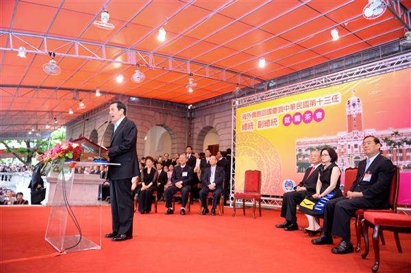 馬英九總統偕同吳敦義副總統下午前往臺北賓館,出席由僑務委員會舉辦的「海外僑胞回國慶賀中華民國第13任總統、副總統就職茶會」,對僑胞們長久以來支持中華民國推動外交與僑務工作,又不辭千里回國致賀的熱忱,表達感謝之意。