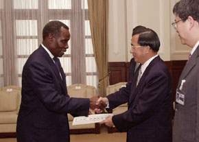 海地共和國新任駐華大使聖路易(Lafontaine Saint-Louis)今天向陳總統水扁先生呈遞到任國書。