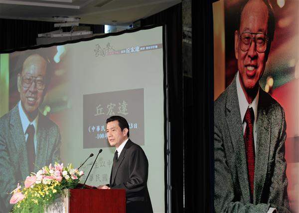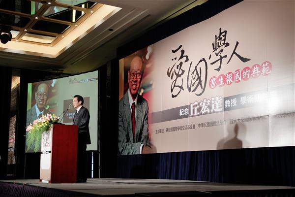 馬英九總統上午出席「紀念丘宏達教授學術研討會」,緬懷「愛國學人」丘教授對國家的卓越貢獻及個人傑出的學術成就;包括監察院前院長錢復、考試院長關中、國家安全會議秘書長胡為真、外交部次長董國猷、駐美代表袁健生及政治大學校長吳思華等人均出席是項活動。