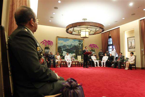 馬英九總統今天接見國防部101年「遠朋複訓班」學員暨眷屬一行,對來自中南美洲及加勒比海友邦國家的高階將領來臺受訓,代表中華民國政府與人民表達誠摯歡迎之意。