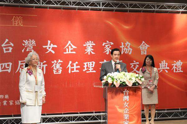 馬英九總統與吳敦義副總統晚間分別出席「臺灣女企業家協會」第3、4屆新舊任理事長交接典禮,對國內女企業家為經濟發展所做的卓越貢獻,表達肯定與感謝之意。
