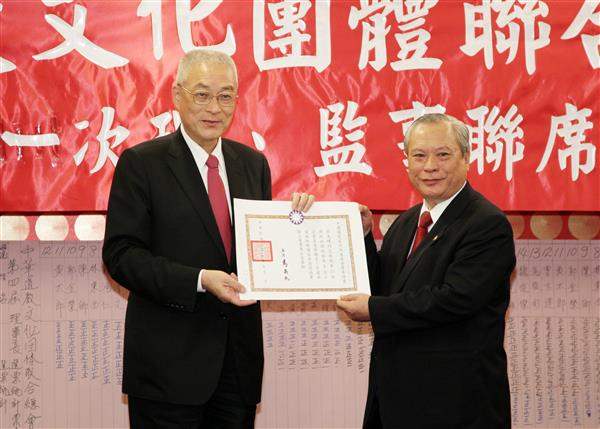 吳敦義副總統晚間由「中華道教文化團體聯合總會」創會理事長吳光輝陪同,出席該會第4屆第1次理監事聯合會議,除祝賀該會道務昌隆,並期盼與會的道教界菁英們繼續支持政府政策,提倡倫理道德、為安定社會而努力。