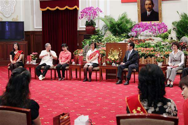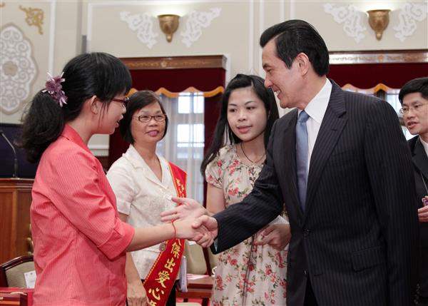 馬英九總統下午接見「第19屆全國十大傑出愛心媽媽慈暉獎」得獎人暨家屬,除感謝「臺灣無障礙協會」為照顧身心障礙朋友權益所做的努力,也對所有獲獎媽媽無私的奉獻與犧牲,表達感佩之意。