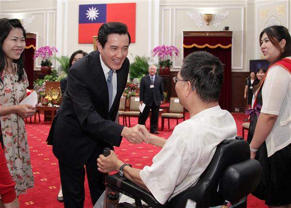 總統說,他在臺北市長任內即非常重視身心障礙朋友的福利,除在捷運通車前邀請身心障礙團體試乘,依建議改善相關設施,還積極推動騎樓整平計畫、呼籲各界捐贈復康巴士等,目的都是希望能讓身心障礙朋友獲得更好的服務。