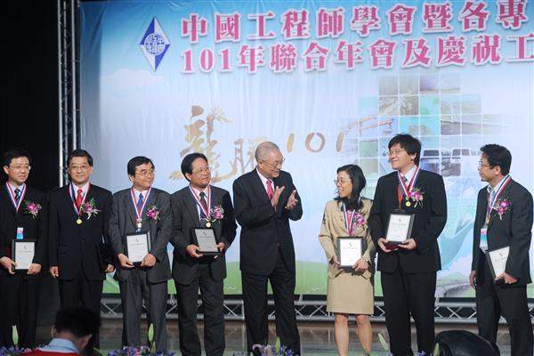 吳敦義副總統下午出席「中國工程師學會暨各專門工程學會101年度聯合年會及慶祝工程師節大會」,除肯定工程師們為國家、民族與社會所做的貢獻,並期勉獲獎菁英們共同尊重自然與創新價值,為打造幸福臺灣而努力。