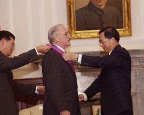 陳總統水扁先生今天以特種大綬景星勳章,頒贈給巴拉圭參議院議長賈雷阿諾(Juan Roque Galeano Villalba),以表彰他為促進中、巴兩國合作關係及鞏固雙方邦誼所作的卓越貢獻。