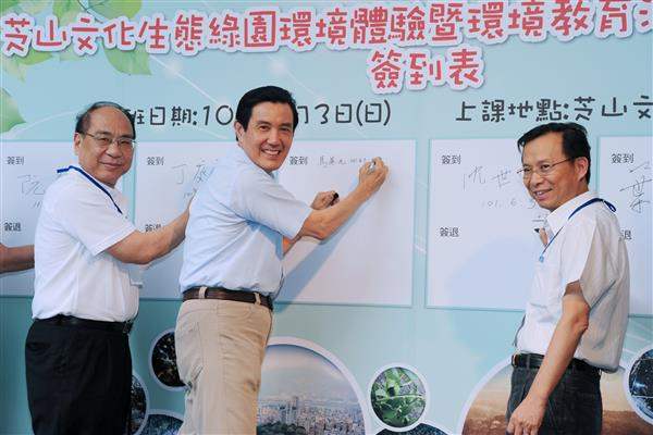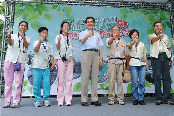 在「世界環境日」前夕,馬英九總統下午出席由行政院環保署舉辦的「用行動愛地球、環境教育心體驗」芝山綠色瑰寶環境體驗暨環境教育法施行周年活動,以具體行動呼籲各界加強環境教育及落實節能減碳。
