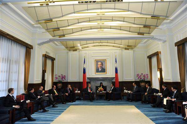 訪賓一行由「美國企業研究院」資深研究員波頓(John Bolton)大使率領,前來總統府晉見總統,國家安全會議秘書長胡為真及外交部次長董國猷也在座。