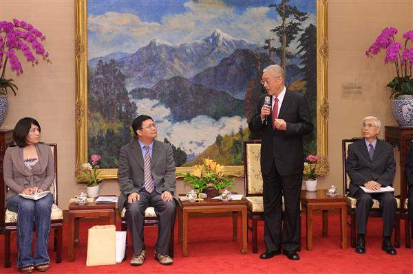 黃敏偉理事長今天率領各縣市協會代表共15人,由行政院衛生署副署長林奏延陪同,前往總統府拜會副總統,內政部主任秘書翁文德也在座。