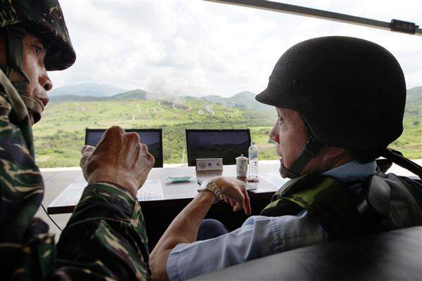 馬英九總統上午前往屏東縣恆春保力山72高地,視導陸軍裝甲584旅「聯勇101-4號」實彈操演,對於該旅特遣隊以及三軍等全體參演官兵的精熟戰技,表達肯定與嘉勉之意。