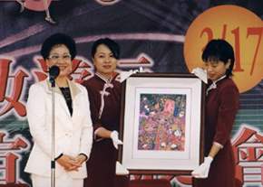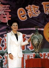 致詞後,副總統並拿出一只釉雕花瓶及一幅畫作義賣,底價分別為十二萬和三萬,經熱烈喊價後,分別以二十萬及十六萬賣出,所得全數捐給反毒活動運用。