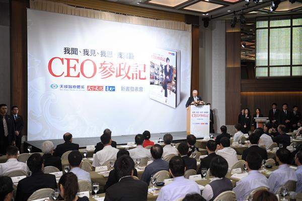 吳敦義副總統下午出席天成醫療體系董事長張育美《CEO參政記—我聞、我見、我思、我實踐》新書發表會,肯定其對社會事務的傑出貢獻。