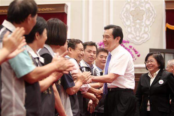 馬英九總統下午接見臺北市松山、信義、南港、內湖、士林及北投等6區共179位里長,肯定與會里長們長年服務地方之貢獻,並重申政府將加強查察業者不當漲價行為,穩定國內物價之決心。