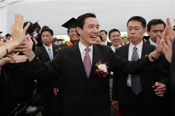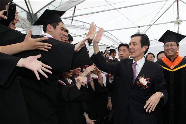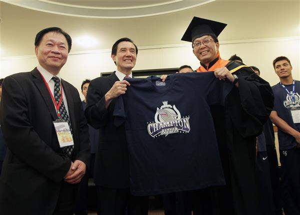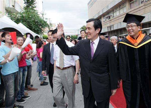 馬英九總統下午前往臺灣藝術大學參加該校100學年度畢業典禮,除恭賀該校籃球校隊贏得100學年度大專籃球聯賽公開一級冠軍,並親自頒發特殊成就獎予46歲的肢體障礙學生陳高登同學。