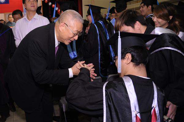 隨後副總統特別為腦麻畢業生陳郁盛撥穗,以肯定其努力向學之精神。