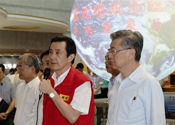 隨後,總統前往交通部中央氣象局視察,除聽取相關氣象預報及提供服務狀況,並與行政院長陳冲、交通部長毛治國、行政院人事行政總處人事長黃富源、交通部中央氣象局局長辛在勤及國家災害防救科技中心主任陳亮全等人,就預防性撤離、封橋封路及停班停課等措施廣泛交換意見。