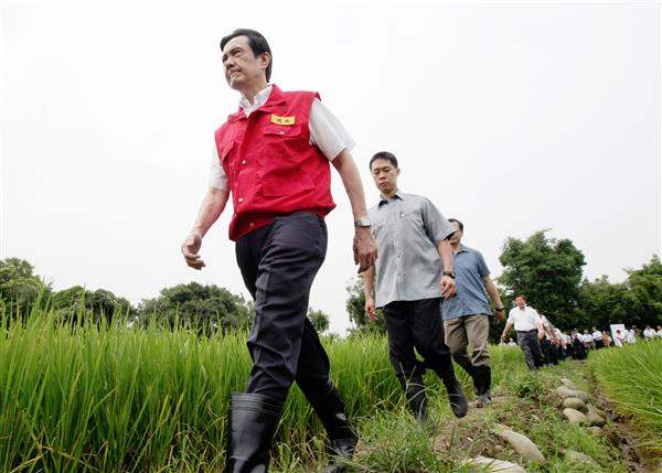 關心連日豪大雨造成農作物損失,馬英九總統上午由行政院農業委員會主任委員陳保基及桃園縣長吳志揚陪同,前往新屋鄉勘察水稻災損情形。總統強調,政府將會秉持「從寬、從速、從簡」的原則,依據「農業天然災害救助辦法」儘快讓受災農民得到適當補助。