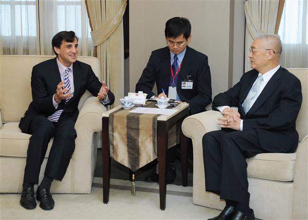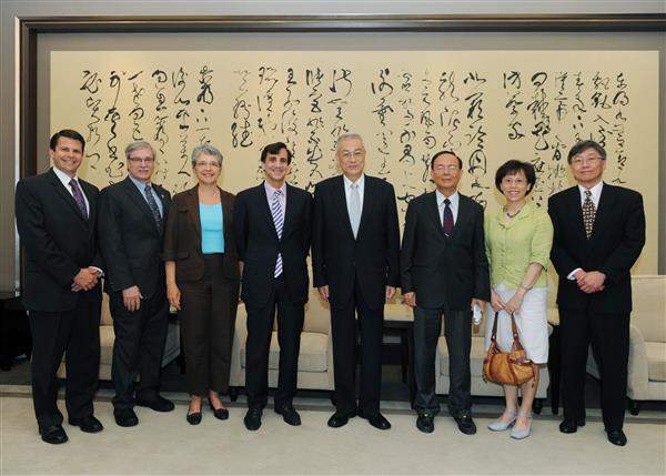 吳敦義副總統上午接見美國約翰霍普金斯大學校長Ronald J.Daniels等一行,除歡迎訪賓來臺訪問,並深盼臺美持續加強學術交流與合作。