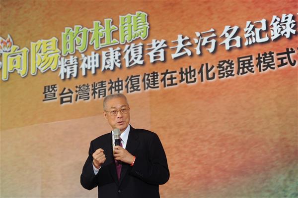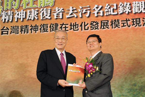 吳敦義副總統上午出席由中華民國「康復之友聯盟」所拍攝的「向陽的杜鵑」紀錄片發表會,感謝相關醫護人員、社福團體與政府機關為精神醫療所做的努力與貢獻,並期勉所有精障朋友都能展翅高飛、向陽綻放。