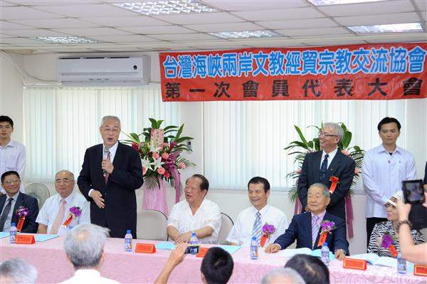 吳敦義副總統上午前往臺南市,出席由前國民大會議長蘇南成等人所創立的「臺灣海峽兩岸文教經貿宗教交流協會」成立大會暨第一屆第一次會員大會,除為該會成立揭牌,並期許該會在確保我國主權完整前提下,成為海峽兩岸另一交流平臺,為兩岸的永續和平發展而努力。