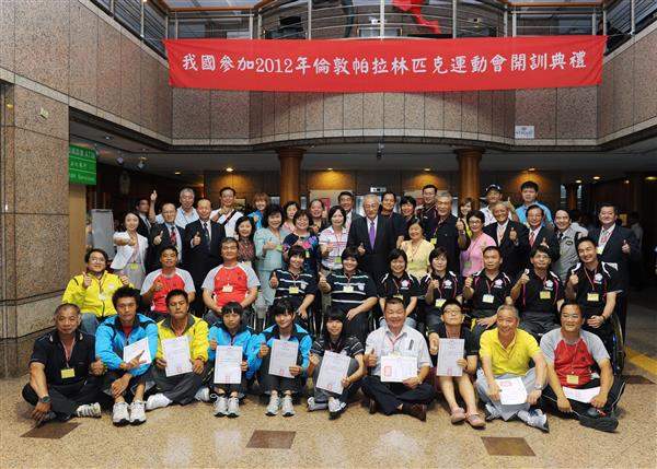 「2012年倫敦帕拉林匹克運動會」將於今年8月29日到9月9日在英國倫敦舉行,吳敦義副總統下午出席該運動會我國代表團總集訓聯合開訓典禮,期勉參賽的18位選手能旗開得勝,為國爭光。