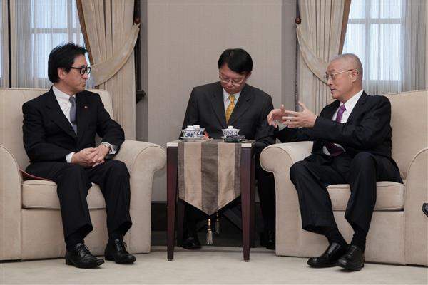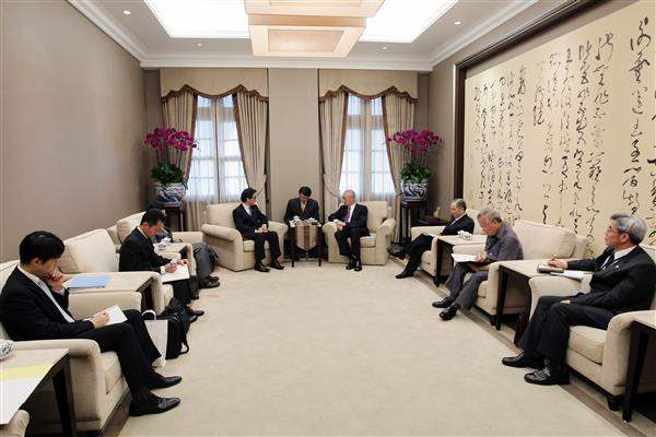 訪賓一行由日本交流協會副代表佐味祐介陪同,前來總統府拜會副總統,外交部主任秘書林松煥及亞東關係協會副秘書長顏平和也在座。