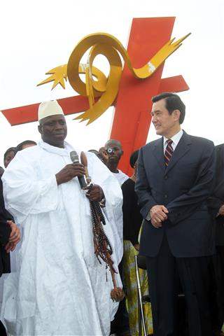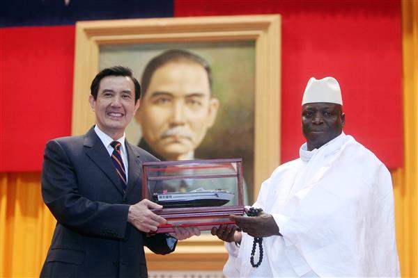 馬總統今年4月訪問甘比亞時,為進一步加強兩國軍事合作關係,特別承諾賈梅總統將援贈該國海軍3艘我國造M2A2成功艇;馬總統今天也特別利用此一機會主持援贈儀式,將成功艇模型贈予賈梅總統,藉「邦誼永固」題字,象徵兩國軍事合作密切、邦誼篤睦。