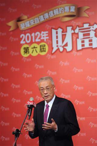 下午,副總統出席由《今周刊》所舉辦的「2012第6屆財富管理銀行評鑑頒獎典禮」,期盼獲獎銀行不僅能替客戶持續創造更好的績效,亦能為提升臺灣社會的整體財富,創造更好的發展與未來而努力。
