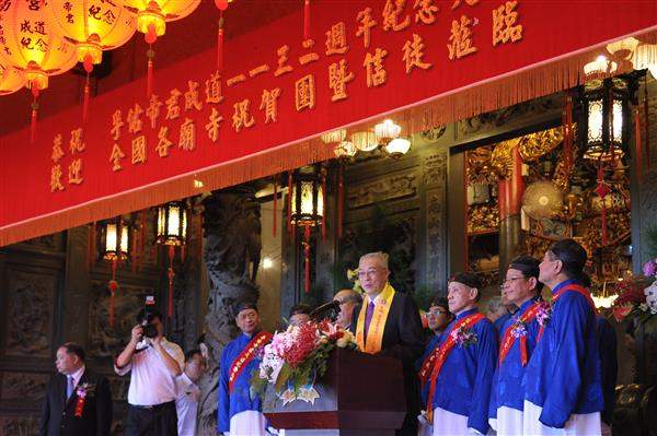 吳敦義副總統上午前往臺北木柵指南宮出席「慶祝孚佑帝君成道1132週年三獻禮暨全國道教界聯合祈福大典」。
