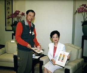 呂副總統秀蓮女士今天接見發起「清淨國土淨人心」活動的環保尖兵林明德,對他第三度步行全島提倡環保的壯舉,特別是體力與毅力的展現,表示感佩之意。