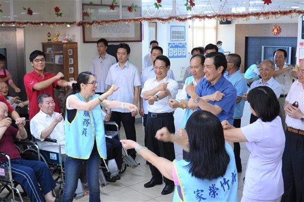 馬英九總統下午前往新竹榮家訪視,除與榮民朋友一起做健康操、參觀榮家今昔照片展及摺紙藝術成果,並致贈加菜金、總統府紀念帽予榮民朋友,感謝他們「半生戎馬、功在國家」的貢獻。