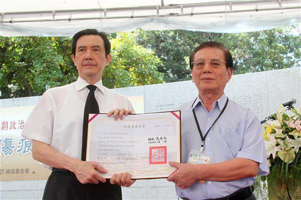 總統說,過去20年來,他親身參與228及白色恐怖事件相關立法、賠償及恢復受難者名譽等工作,例如在擔任臺北市長任內,規劃參與「白色恐怖受難者紀念碑」的籌建過程,並於2008年竣工完畢。
