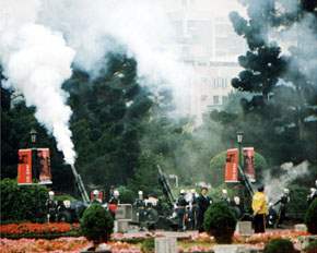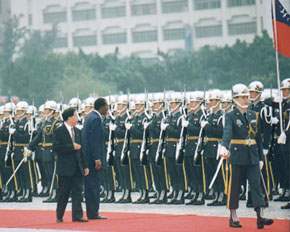 陳總統水扁先生今天代表中華民國政府與人民,以隆重軍禮歡送查德共和國總統德比及訪問團團員。