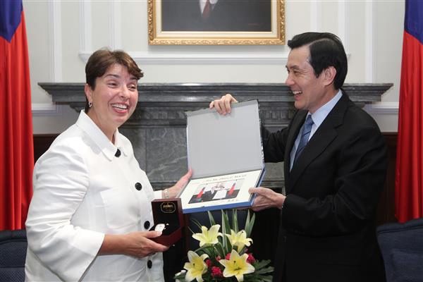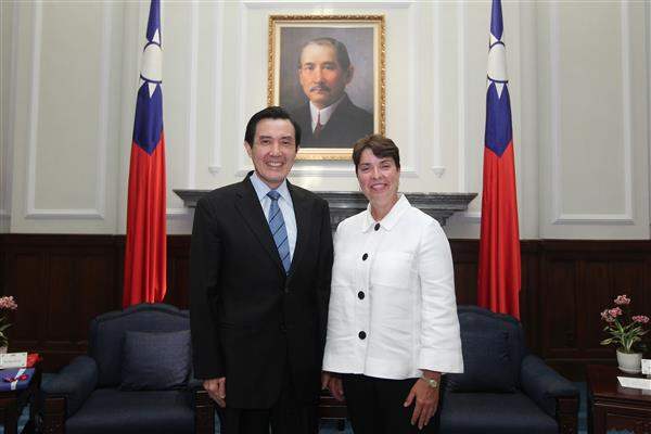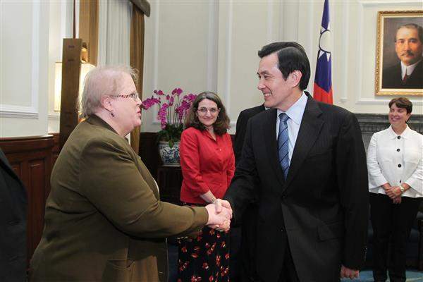 馬英九總統晚間接見美國國務院國際信息局局長麥考爾(Dawn L. McCall),對訪賓遠道前來參訪「美國在臺協會」(AIT)在臺北及臺中設立的「美國資料中心」(American Corner),加強臺美雙邊教育文化關係,表達誠摯歡迎與感謝之意。