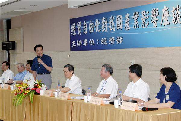 馬英九總統上午由經濟部長施顏祥陪同,出席由該部主辦的「經貿自由化對我國產業影響」座談會,除聽取業界意見,並說明政府推動經貿自由化相關政策作為。