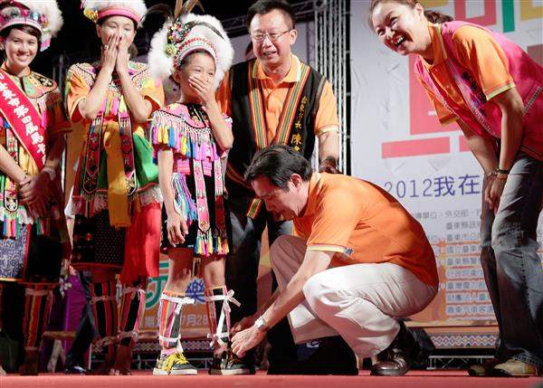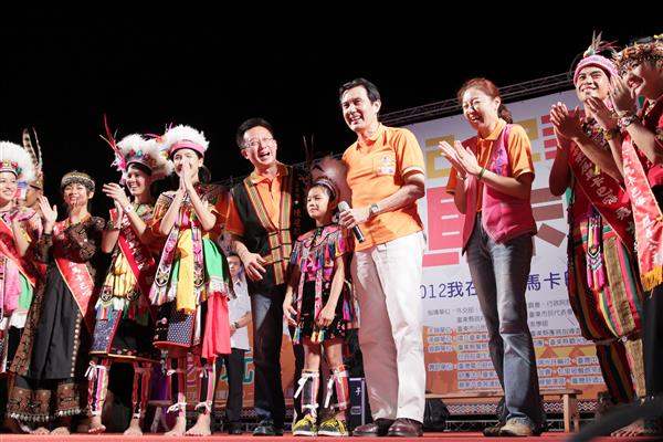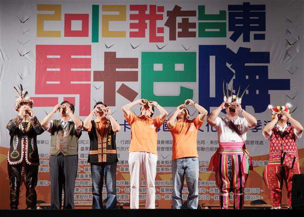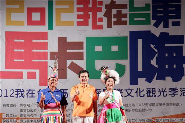 馬英九總統晚間出席「2012我在臺東馬卡巴嗨國際文化觀光季」活動,並與行政院原住民族委員會主任委員孫大川、臺東縣長黃健庭及臺東市長陳建閣等人進行祈福儀式,祝福活動圓滿成功、全國同胞平安喜樂。