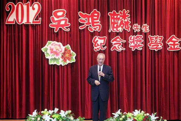 馬英九總統下午偕同吳敦義副總統前往桃園縣政府出席「吳鴻麟先生紀念獎學金」頒獎典禮,勉勵受獎學生培養全方位人格,以適應多元環境,俾更能在社會上立足與發展。