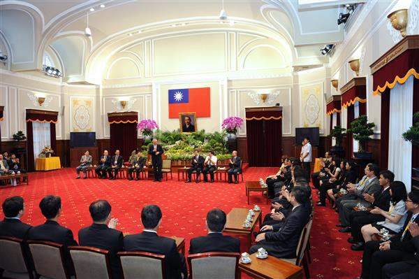 吳敦義副總統下午接見「第15屆莫斯科阿基米德國際發明展」暨「2012義大利國際發明展」金牌獎得獎者,對訪賓為國爭光,代表政府表達恭賀之意。