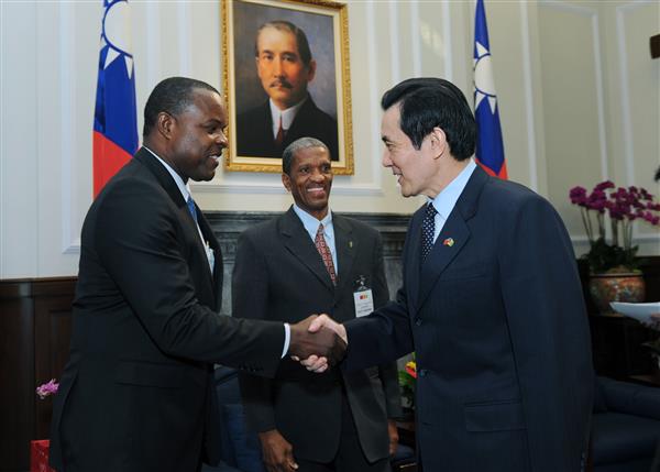 聖文森國外交、外貿暨消費者事務部長史萊特及常務次長維克漢(Andreas Wickham)上午前來總統府晉見總統,國家安全會議諮詢委員楊永明及外交部常務次長柯森耀也在座。
