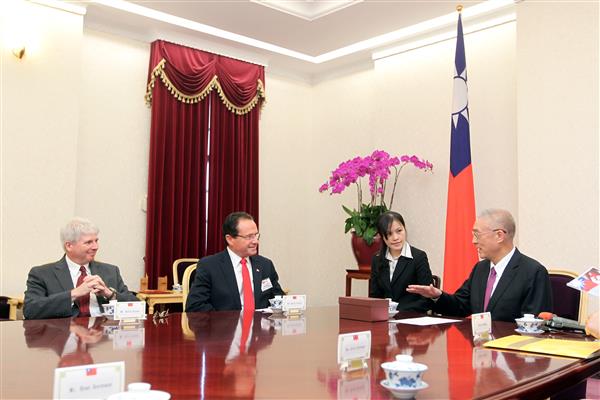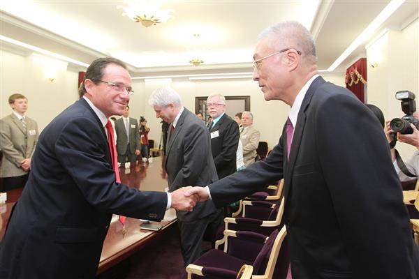 吳敦義副總統上午接見加拿大聯邦眾議員韓德博(Harold Albrecht)等一行,代表中華民國政府歡迎訪賓率團來訪,期盼除欣賞臺灣的美景、品嚐美食,以及瞭解臺灣的基礎建設與經濟發展,並能加強文化、經貿等各項交流與合作,以進一步深化臺加關係。