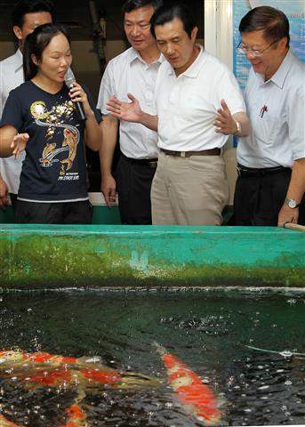 馬英九總統上午由行政院農業委員會主任委員陳保基陪同,前往雲林縣崙背鄉水尾村訪視欣昌錦鯉養殖場,除高度肯定該公司創新精神及打入國際市場的努力,並強調政府將持續協助業者排除障礙、調整心態,期能在8年內加入「跨太平洋戰略經濟伙伴關係協定」(TPP)。