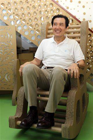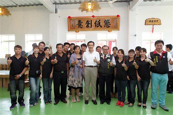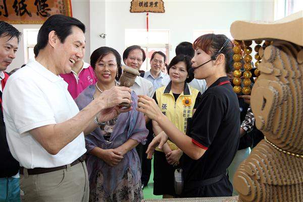 稍後,總統由經濟部次長杜紫軍及中小企業處長葉雲龍陪同,前往榮星紙業成立的「悠紙生活館」,參觀館方製作的「媽祖婆」、「搖搖馬」等創意紙製品,並試坐可載重250公斤的「搖搖椅」,對館方的創意及創新精神高度讚揚。