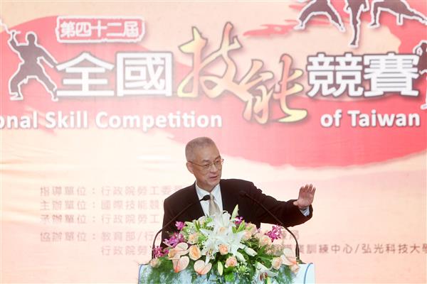 吳敦義副總統上午由行政院勞工委員會主任委員王如玄陪同,前往台中市出席「第42屆全國技能競賽暨第42屆國際技能競賽國手選拔賽頒獎暨閉幕典禮」,期勉獲勝選手們在參加明年德國來比錫舉辦的國際技能競賽時,能為自己及臺灣爭光。