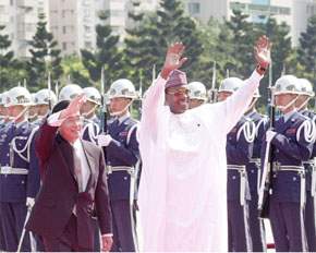 陳總統水扁先生今天以隆重軍禮歡迎率團來華訪問的查德共和國總統德比及訪問團。