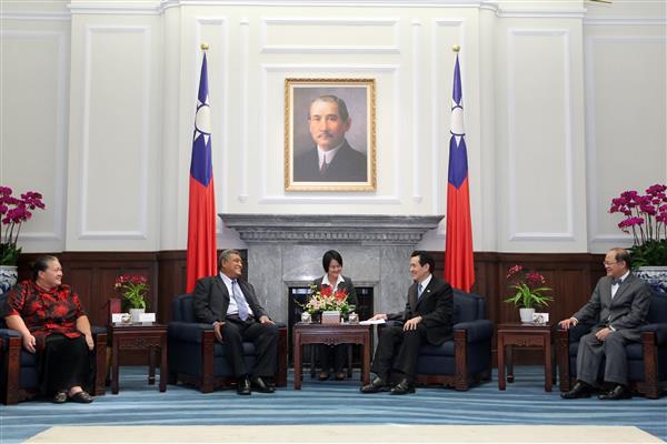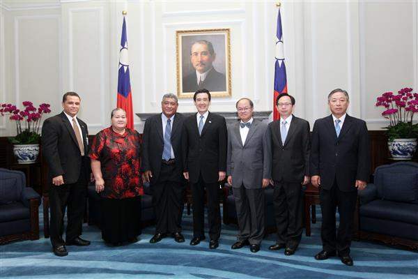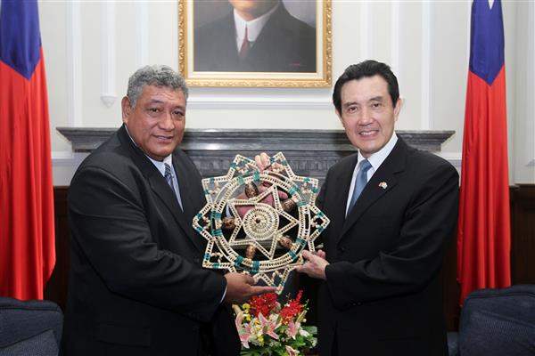 馬英九總統上午接見吐瓦魯國外交部長葉雷米亞(Apisai Ielemia)伉儷等一行,代表我國政府與人民熱誠歡迎訪賓來臺,並暢談臺、吐兩國多項合作計畫,期能持續加強合作,鞏固雙方邦誼。