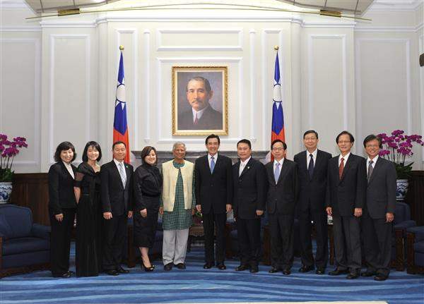 總統告訴訪賓,中華民國經過60年來的經濟發展,有許多措施與尤努斯教授的理念不謀而合,例如政府透過「信保基金」保證搭配比率,協助中小企業順利取得融資,迄今融資金額達約新臺幣1兆元,此舉受到國內中小企業歡迎。