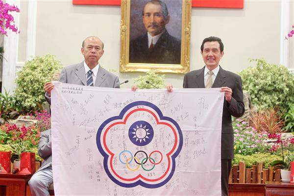 訪賓一行由「中華奧運代表團」主席蔡辰威率領,行政院體育委員會主任委員戴遐齡及副主任委員錢薇娟陪同,前來總統府接受總統道賀,總統府副秘書長熊光華也在座。