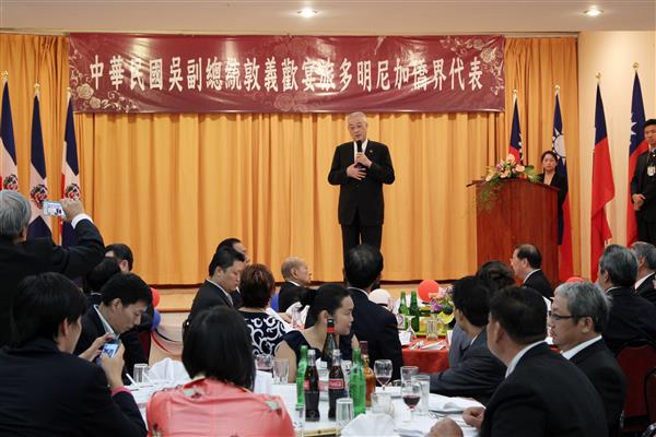 吳副總統談及,60餘年來臺灣也是自艱苦中逐步發展,基於臺多兩國長期以來的友好情誼,我們非常樂於分享相關經驗。最後,吳副總統舉杯祝賀多國國運昌隆、兩國邦誼永固。