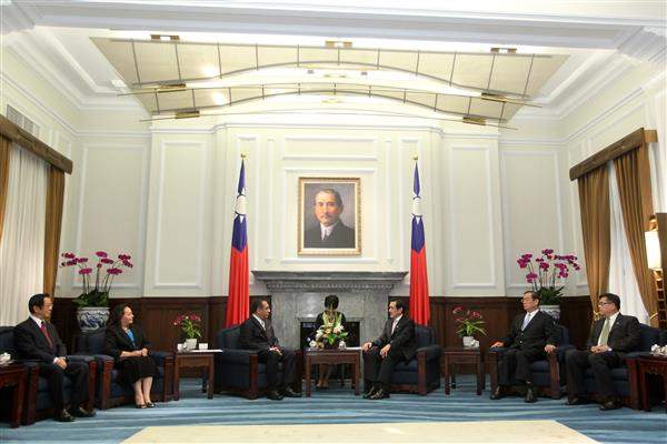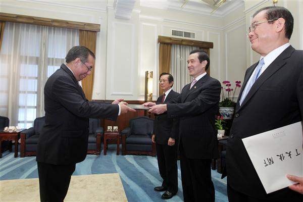 呈遞國書儀式上午在總統府進行,總統府秘書長曾永權及外交部長楊進添等人皆在場觀禮。